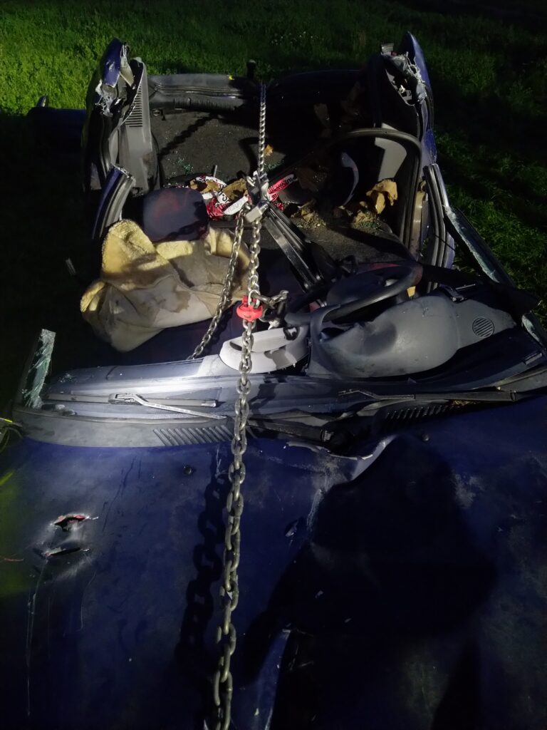 Nach einer kurzen technischen Einweisung gings es auch direkt an das Sichern des Fahrzeuges, unter zuhilfenahme des StabFast-Systems. Anschließend haben wir verschiedenste Rettungswege besprochen und ausprobiert. Mit dem Glasmanagement und der hydraulischen Schrere haben wir schließlich das Dach entfernt um einen adäquaten Zugang zum Patienenten zu erhalten. Da es sich um eine Übung handelte und das Auto eh in keinem verkaufsfähigen Zustand mehr war. Haben wir noch die Lenksäule nach oben gezogen und zu demonstration der Möglichkeiten des Spreitzers, haben wir das Fahrzeug zu guter Letzt zusammen gerollt.